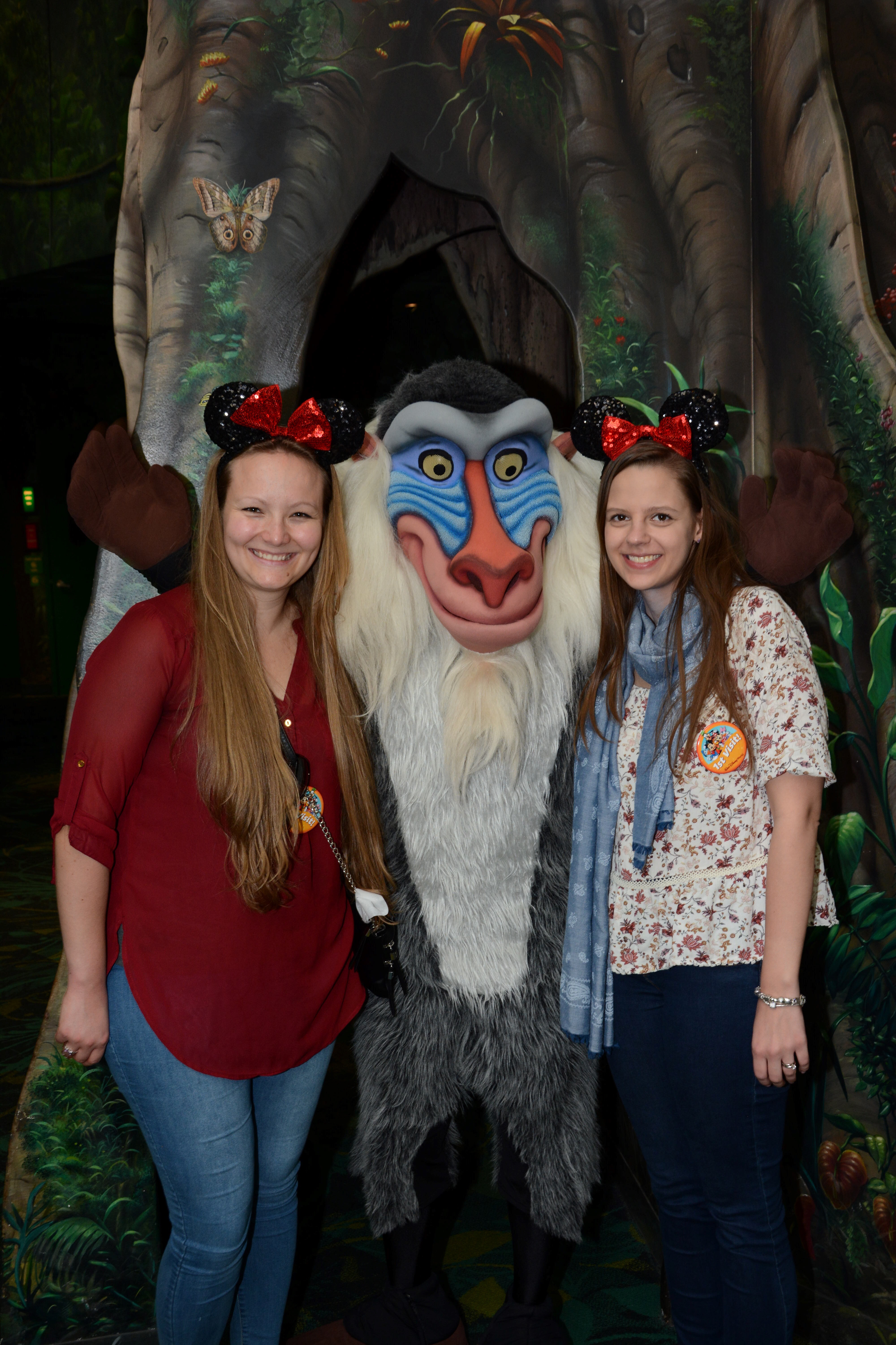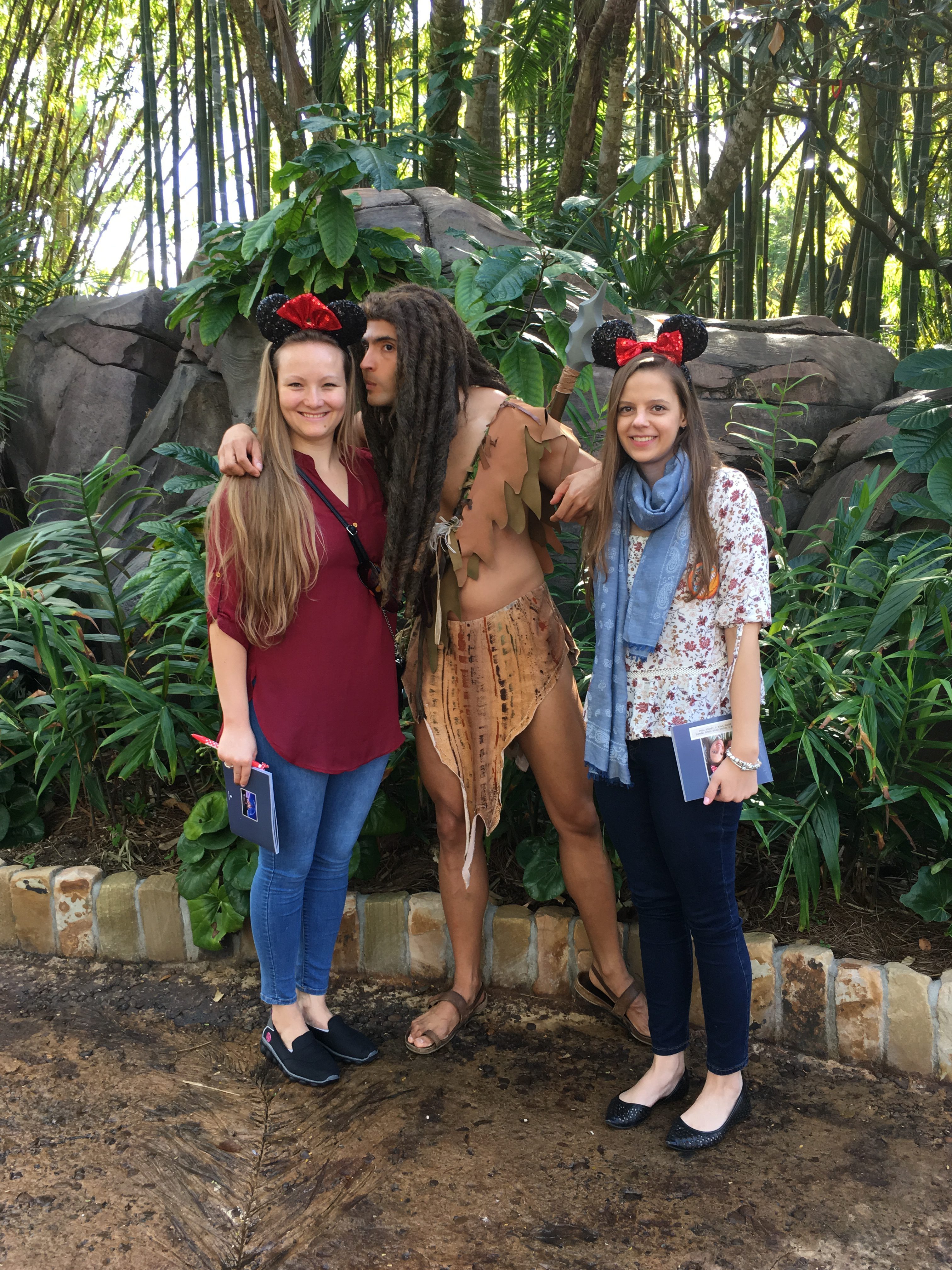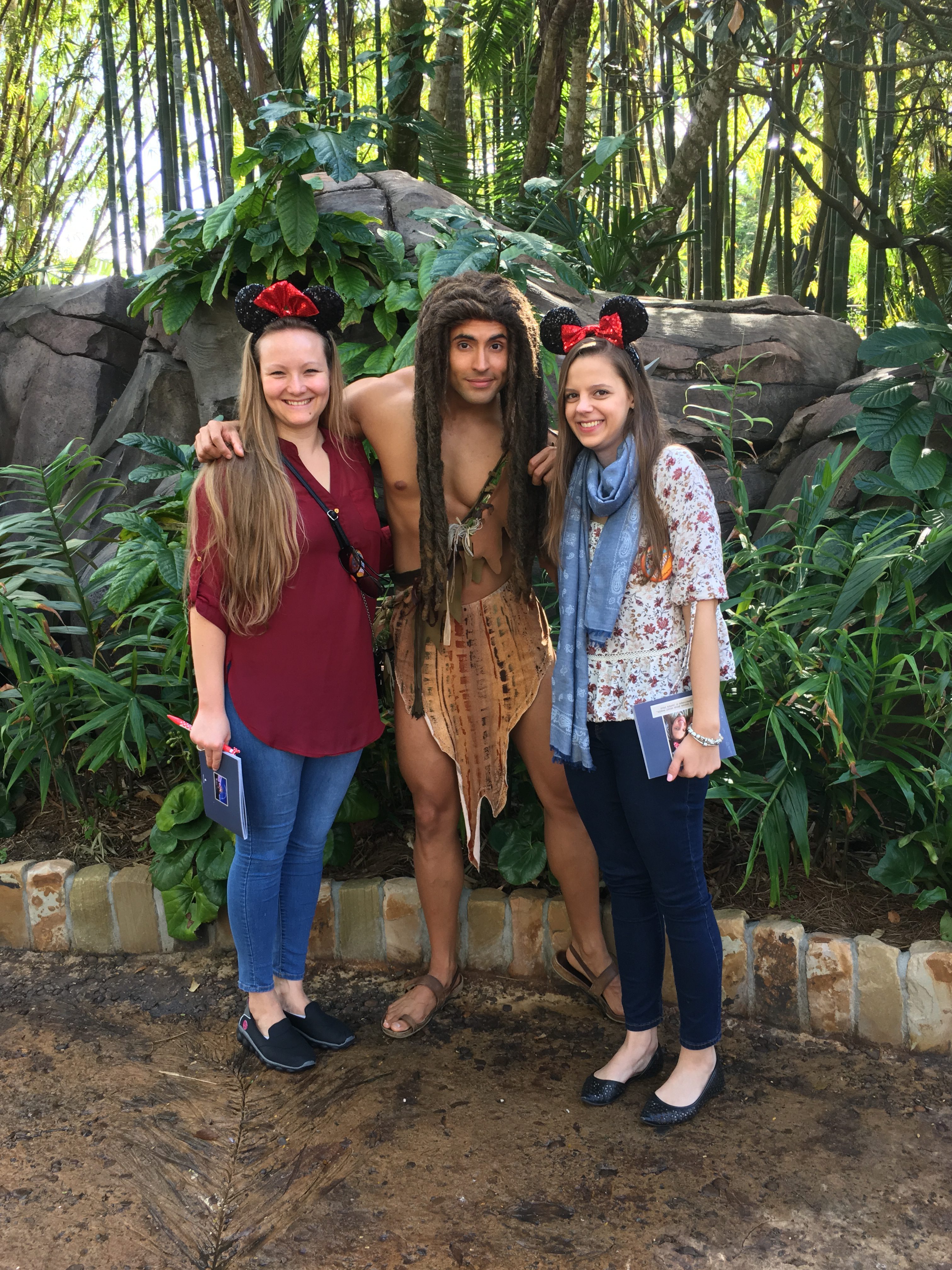 The tree of life (a man made tree, with different animal faces all around the stem) is truly a sight to see. It just looks so beautiful. Throughout the day we met Pocahontas, Rafiki (who was really sweet and helped me out of the wheelchair and walked with me to his spot where he took pictures). We met Chip & Dale, who tried to propose to us. There was also Balou and King Louie, as well as Tarzan, who sniffed Annika’s hair and told us he gets bananas when he writes/signs good.