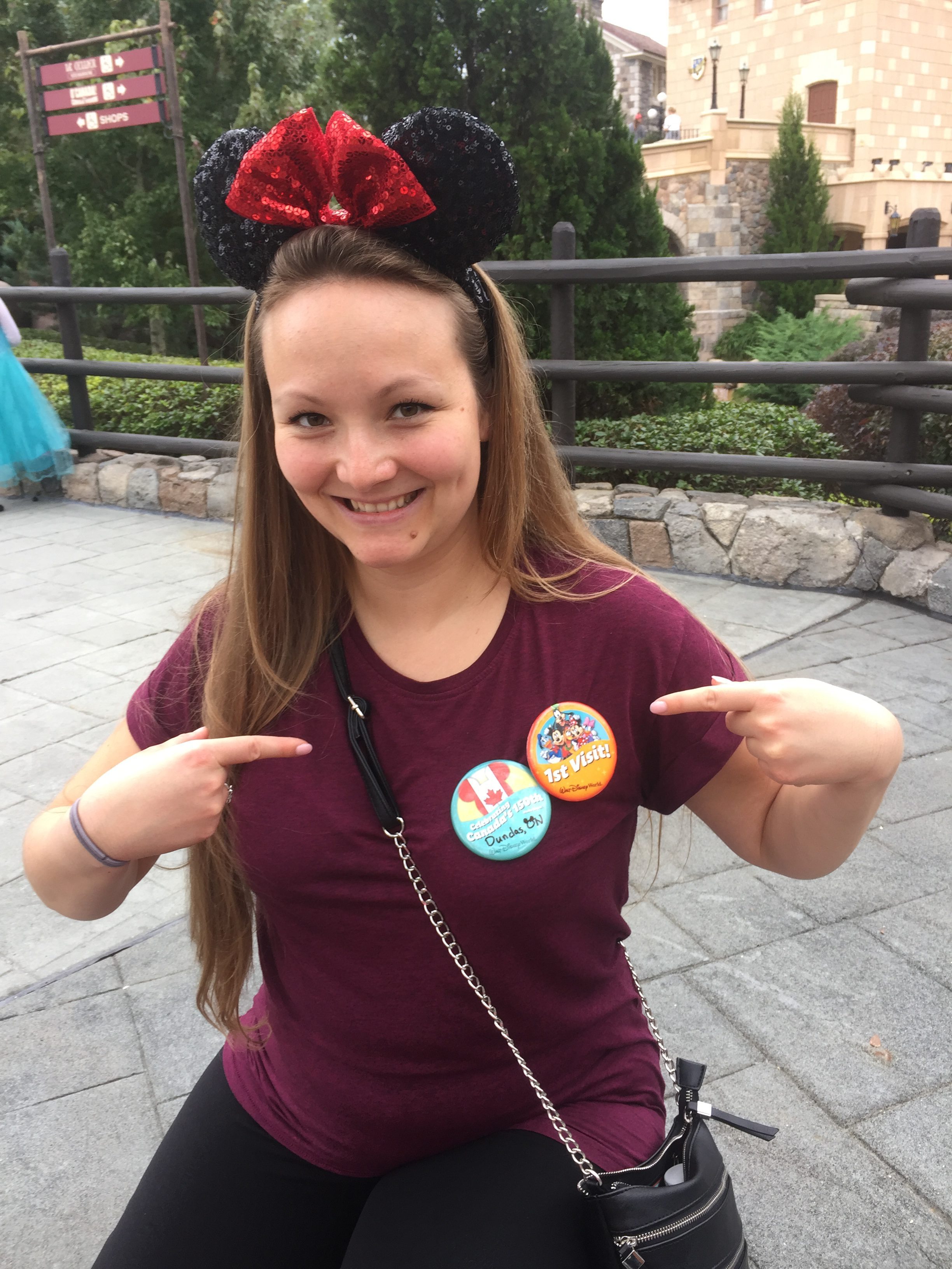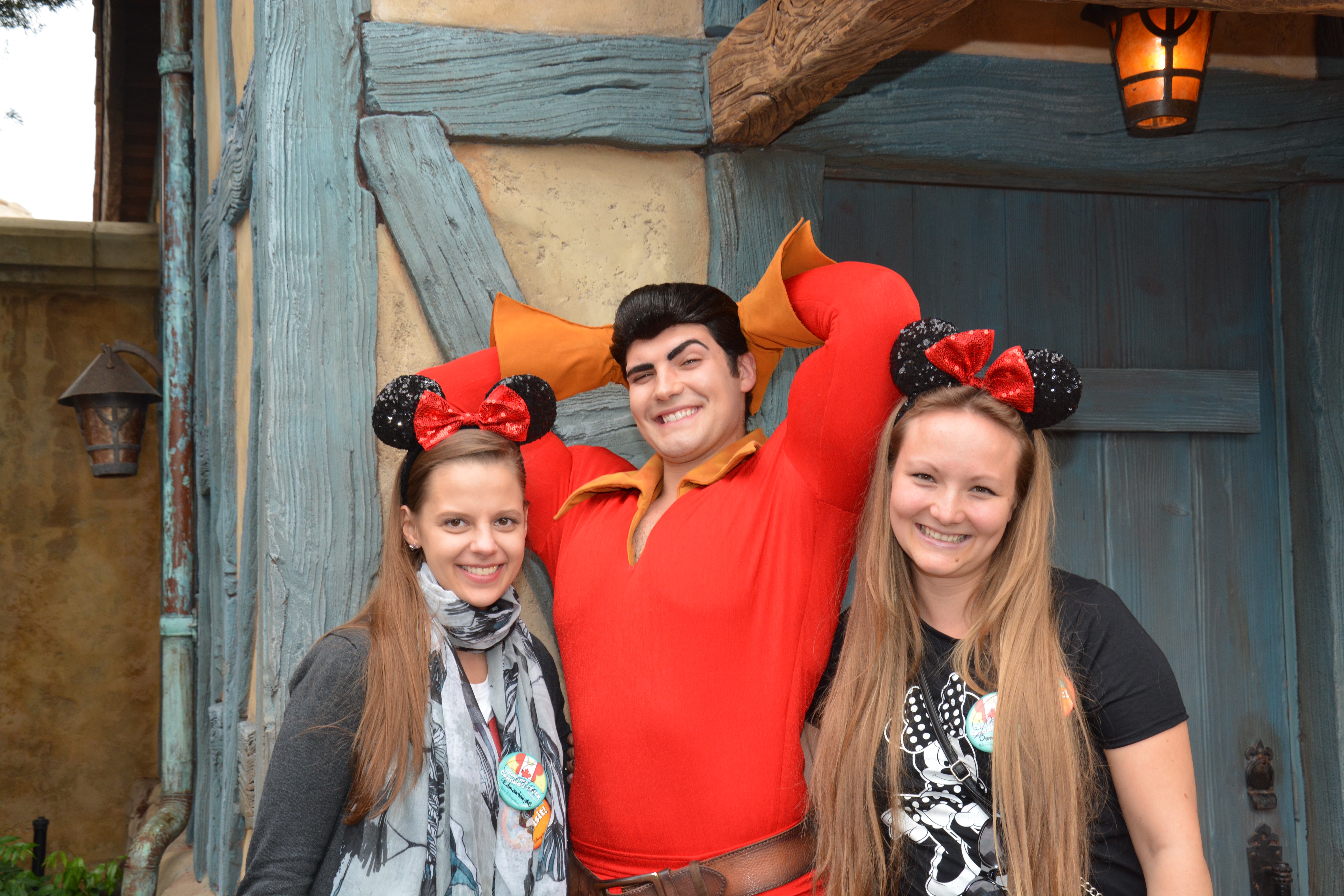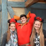 I thought I would embarrass Annika a little and point out to Gaston that she is single and just see where that would go. It was absolutely hilarious. This guy is such a good improv actor that we were laughing so hard we were crying. We had gotten a pin at Epcot the day before for Canadas 150th birthday. He decided that was just lame and he needed to make it a celebration of him, so he crossed off our hometowns and signed the pins with his name. I think that meeting will be one we will talk about for a long time.