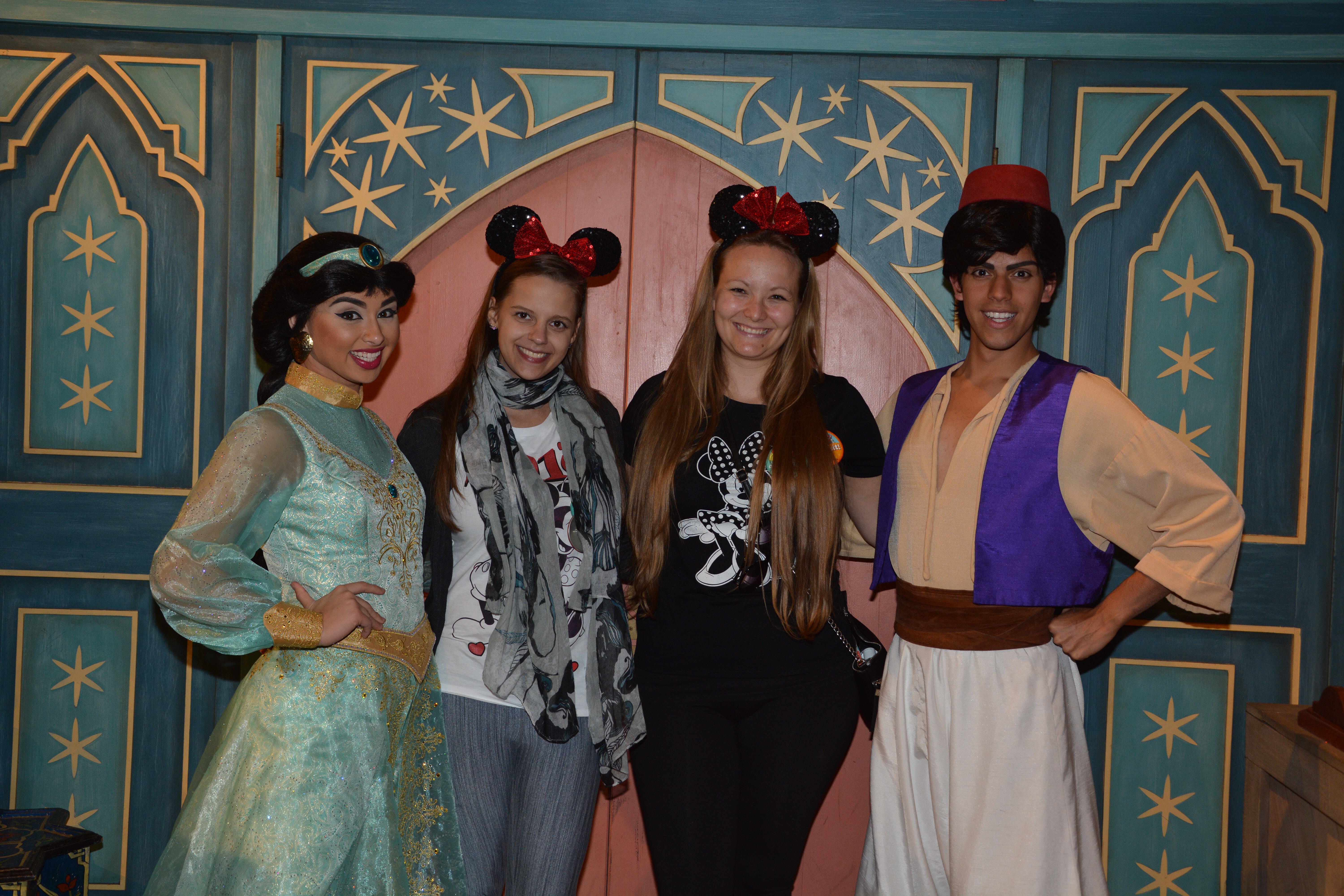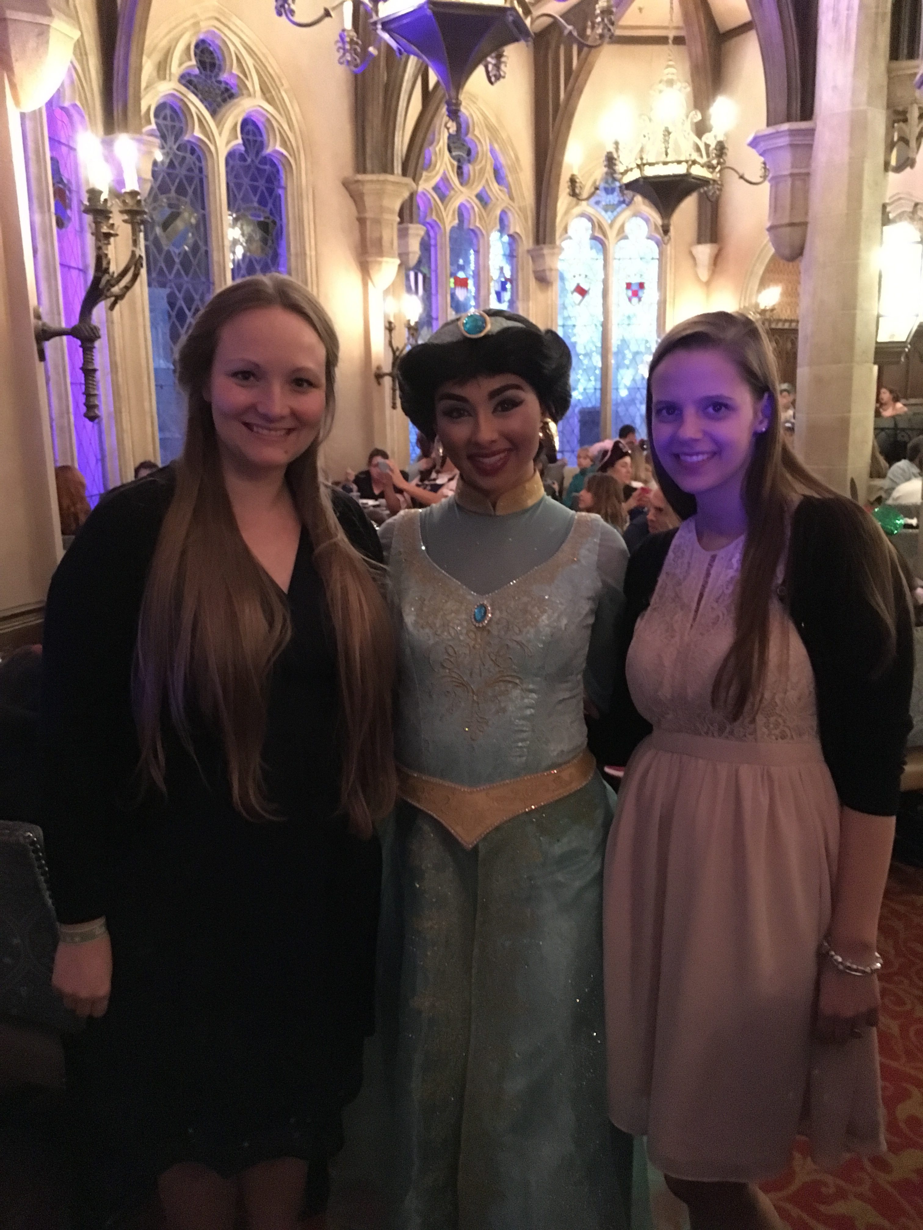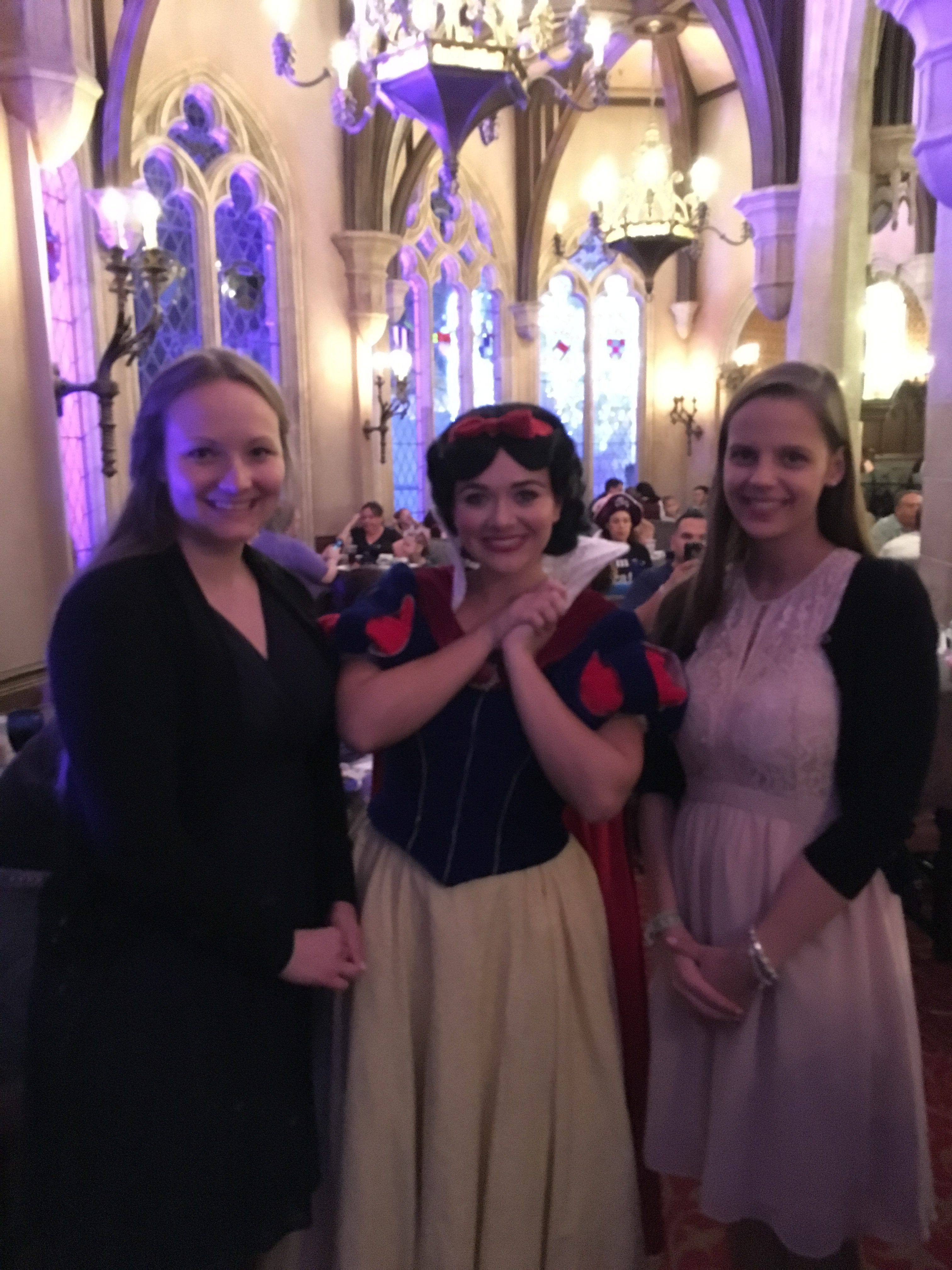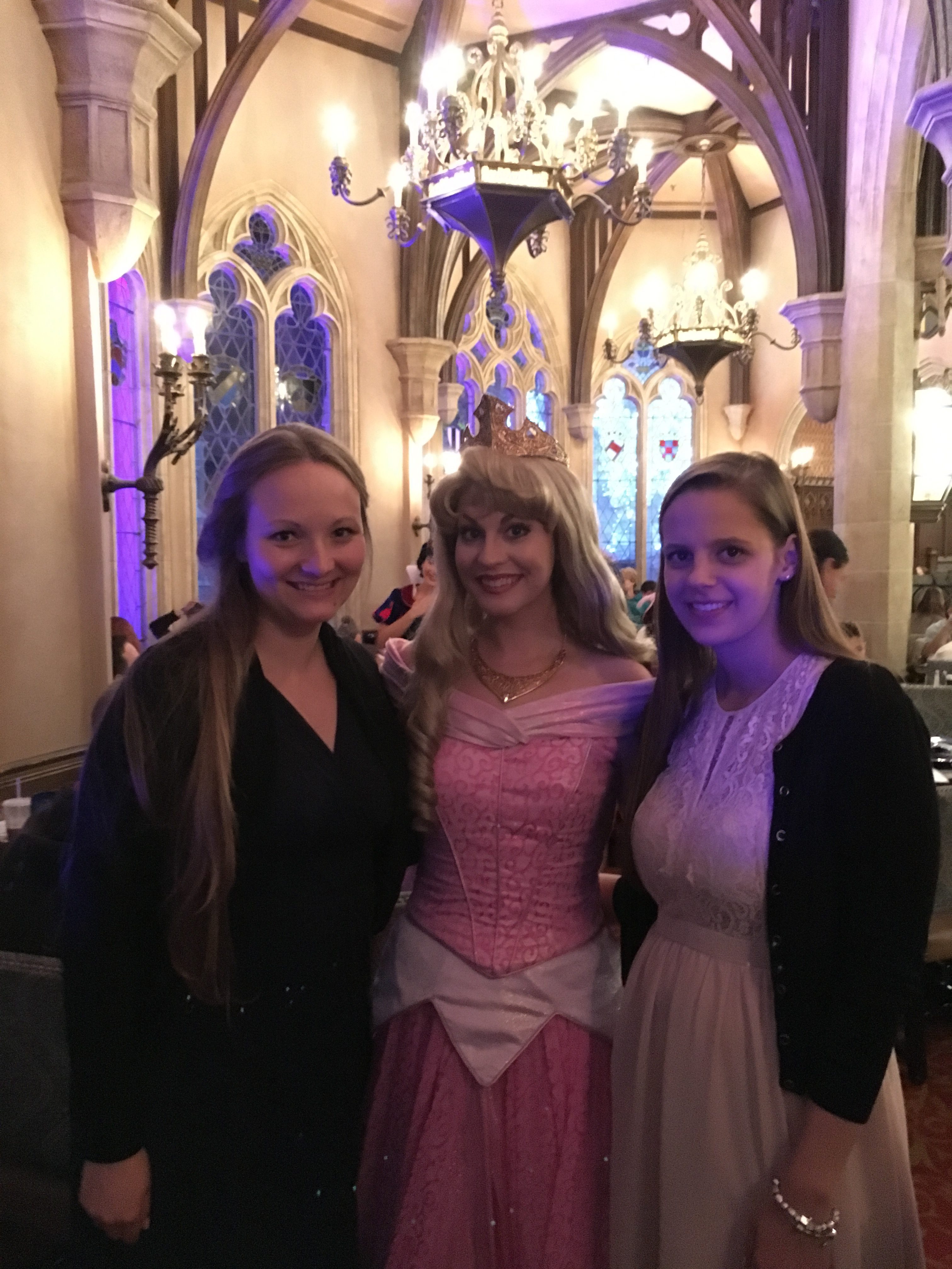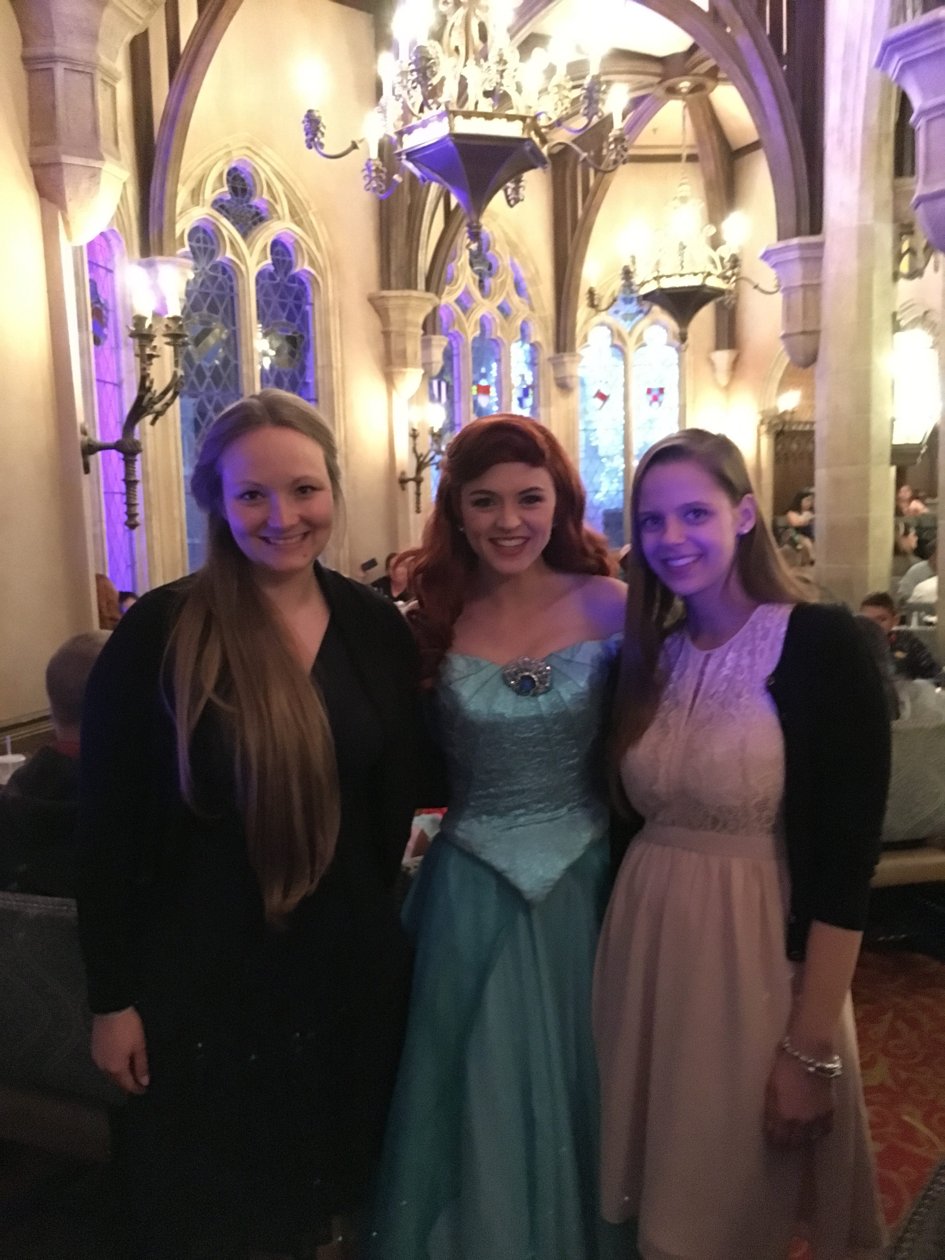 Since we had dinner reservation we decided to just walk through the park and look at some things so we wouldn’t be too late for it. By the time we got to the castle where our dinner would be, we were even more excited to be there. We met Cinderella before dinner and as we were eating, Snow White, Ariel, Aurora and Jasmine made a stop at our table. We talked to them, got some signatures and picture.